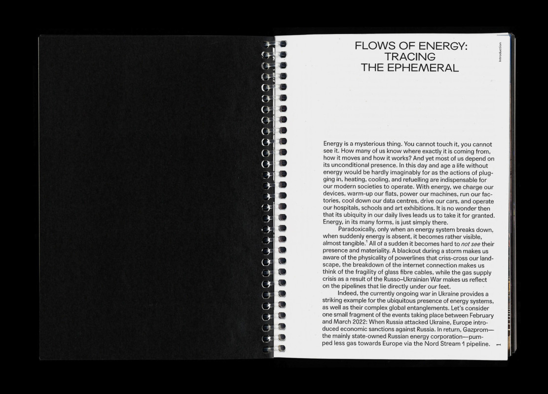 Energy is a mysterious thing. You cannot touch it, you cannot see it. How many of us know where exactly it is coming from, how it moves and how it works? And yet most of us depend on its unconditional presence. In this day and age a life without energy would be hardly imaginably for as the actions of plugging in, heating, cooling, and refuelling are indispensable for our modern societies to operate. With energy, we charge our devices, warm-up our flats, power our machines, run our fac-tories, cool down our data centres, drive our cars, and operate our hospitals, schools and art exhibitions. It is no wonder then that its ubiquity in our daily lives leads us to take it for granted. Energy, in its many forms, is just simply there. Paradoxically, only when an energy system breaks down, when suddenly energy is absent, it becomes rather visible, almost tangible. All of a sudden it becomes hard to not see their presence and materiality. A blackout during a storm makes us aware of the physicality of powerlines that criss-cross our land-scape, the breakdown of the internet connection makes us think of the fragility of glass fibre cables, while the gas supply crisis as a result of the Russo-Ukrainian War makes us reflect on the pipelines that lie directly under our feet Indeed, the currently ongoing war in Ukraine provides a striking example for the ubiquitous presence of energy systems, as well as their complex global entanglements. Let’s consider one small fragment of the events taking place between February and March 2022: When Russia attacked Ukraine, Europe introduced economic sanctions against Russia. In return, Gazprom-the mainly state-owned Russian energy corporation-pum-ped less gas towards Europe via the Nord Stream pipeline. Read more